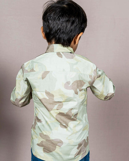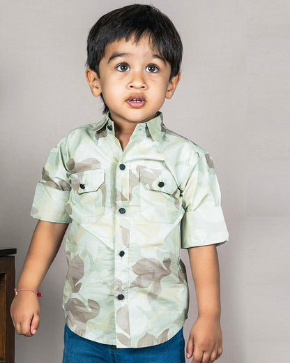 Polka Tots Green Shirt-Camouflage-Cotton-For Infants