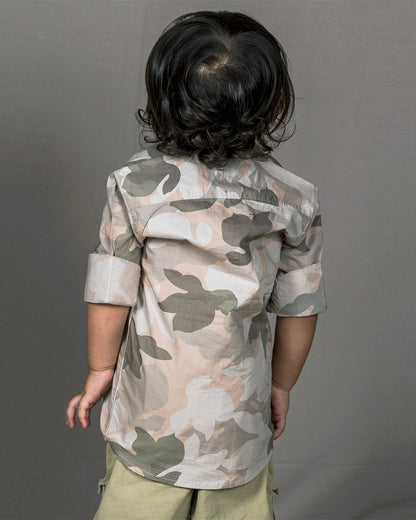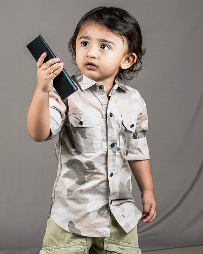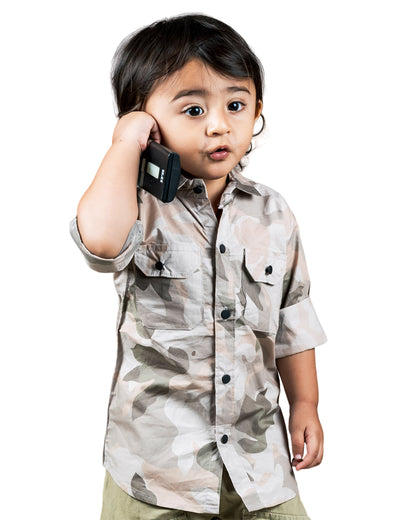 Polka Tots Grey Shirt-Camouflage-Cotton-For Infants
