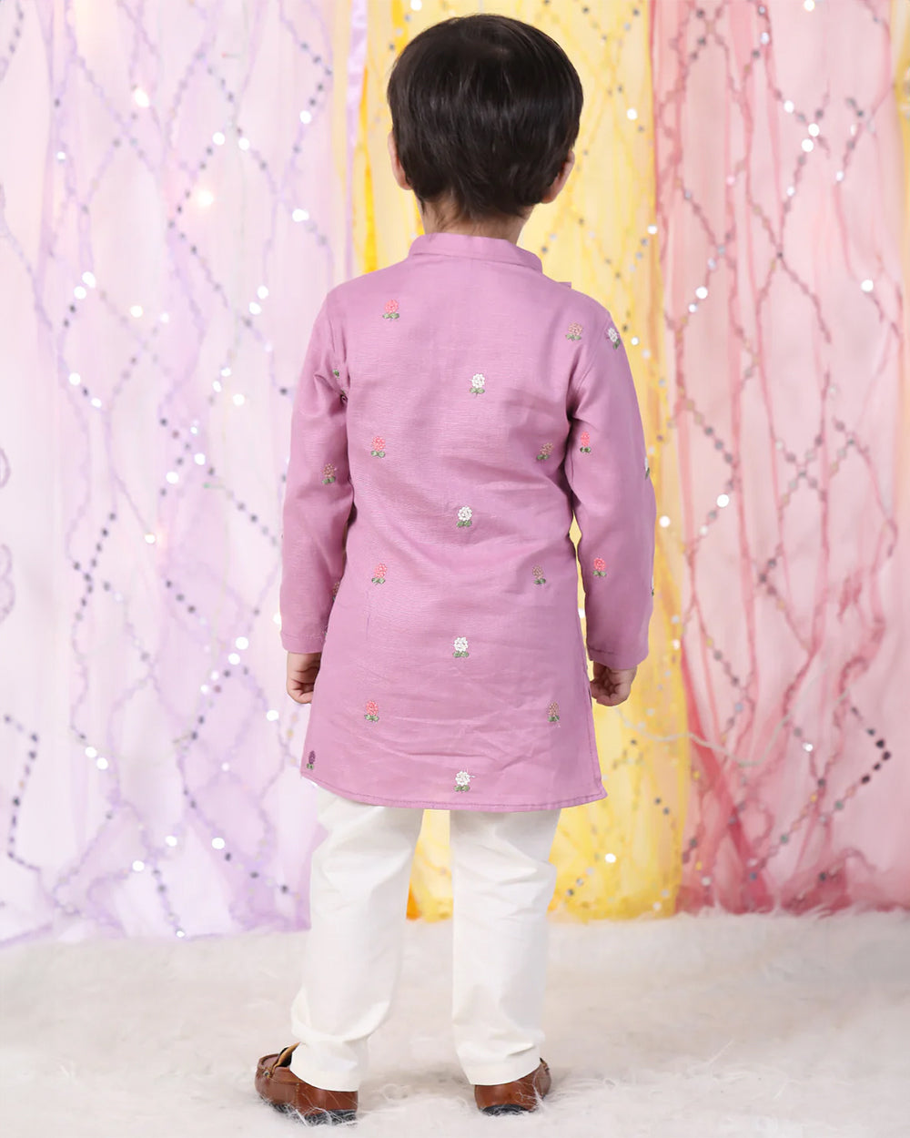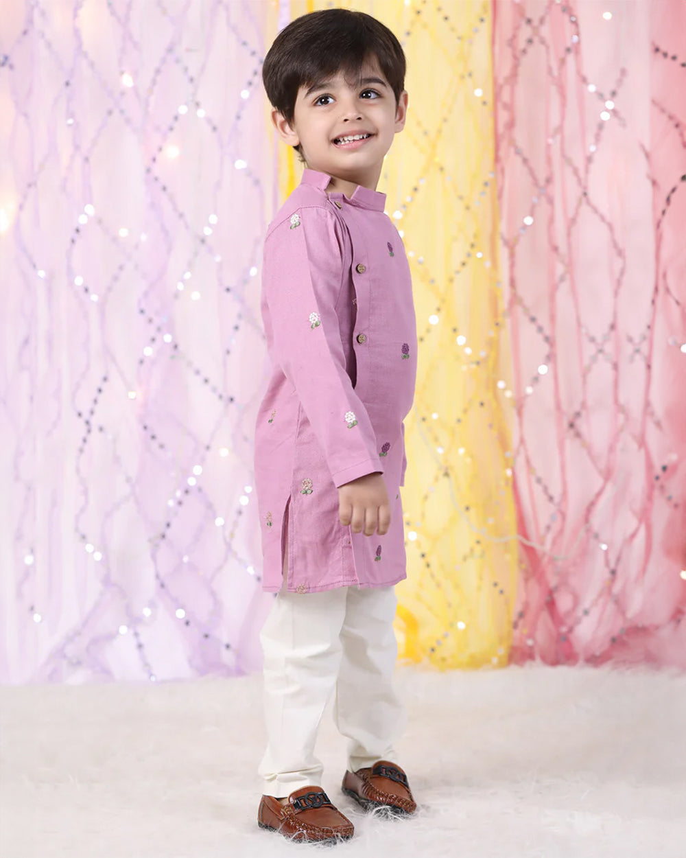 Polka Tots Lavender Kurta Pajama Set-Cotton-Embroidered-For Infants