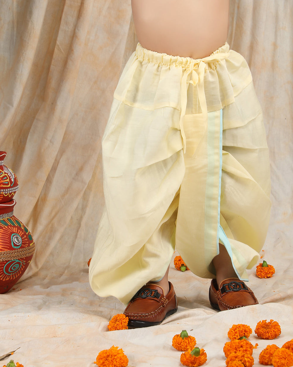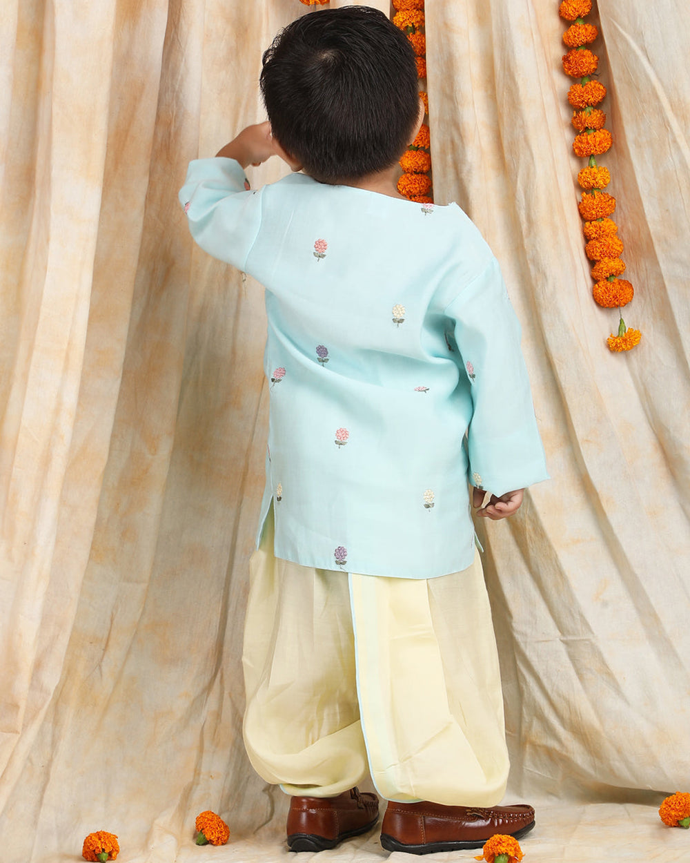 Polka Tots Light Blue & Cream-Angrakha Set-Flower Embroidered-Silk-For Infants