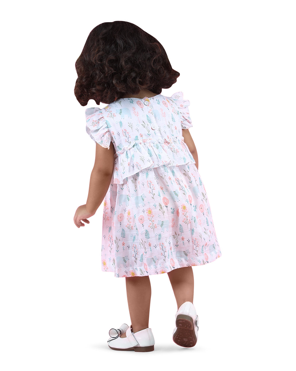 Polka Tots Multicolor Frock Dress-Bloomy Bear Print-Cotton Muslin-For Infants