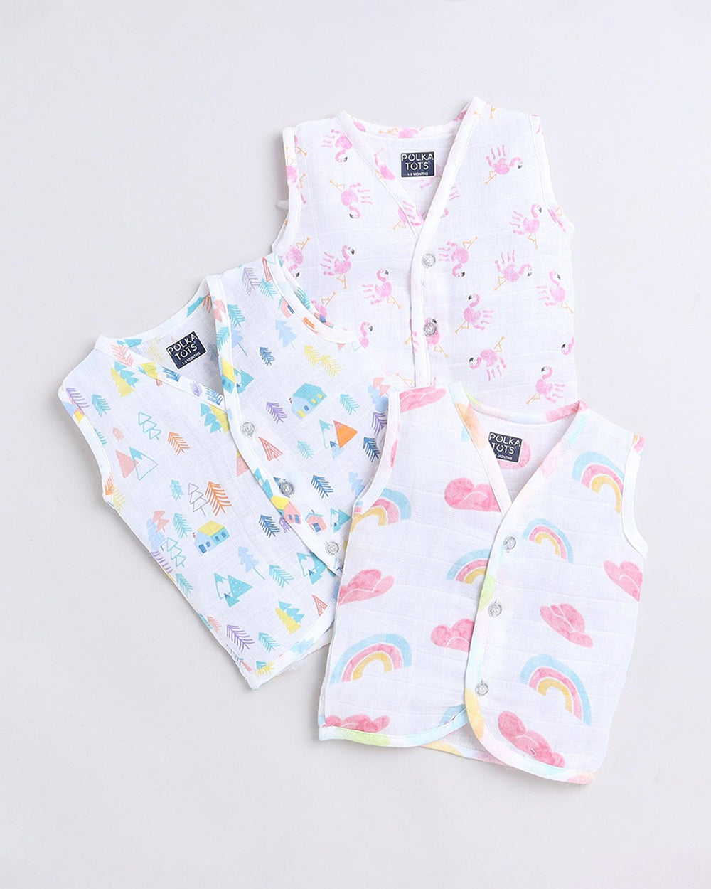 Polka Tots Multicolor Jhabla Vests-Cotton-Printed-Pack of 3-For Infants