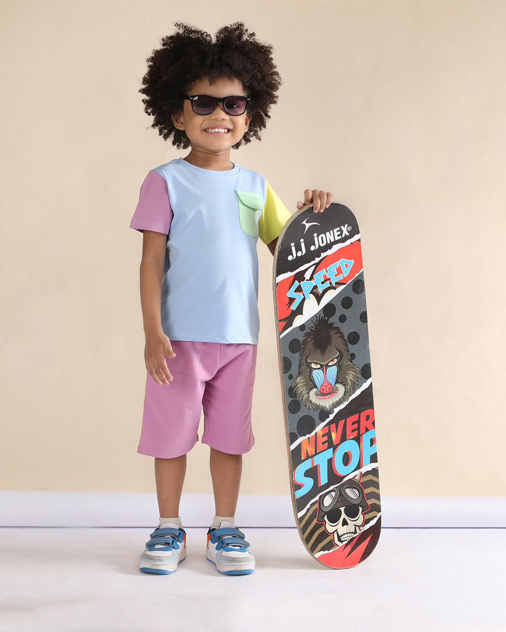 Polka Tots Multicolor T-shirt & Shorts Set-Colorblock-Cotton-For Infants