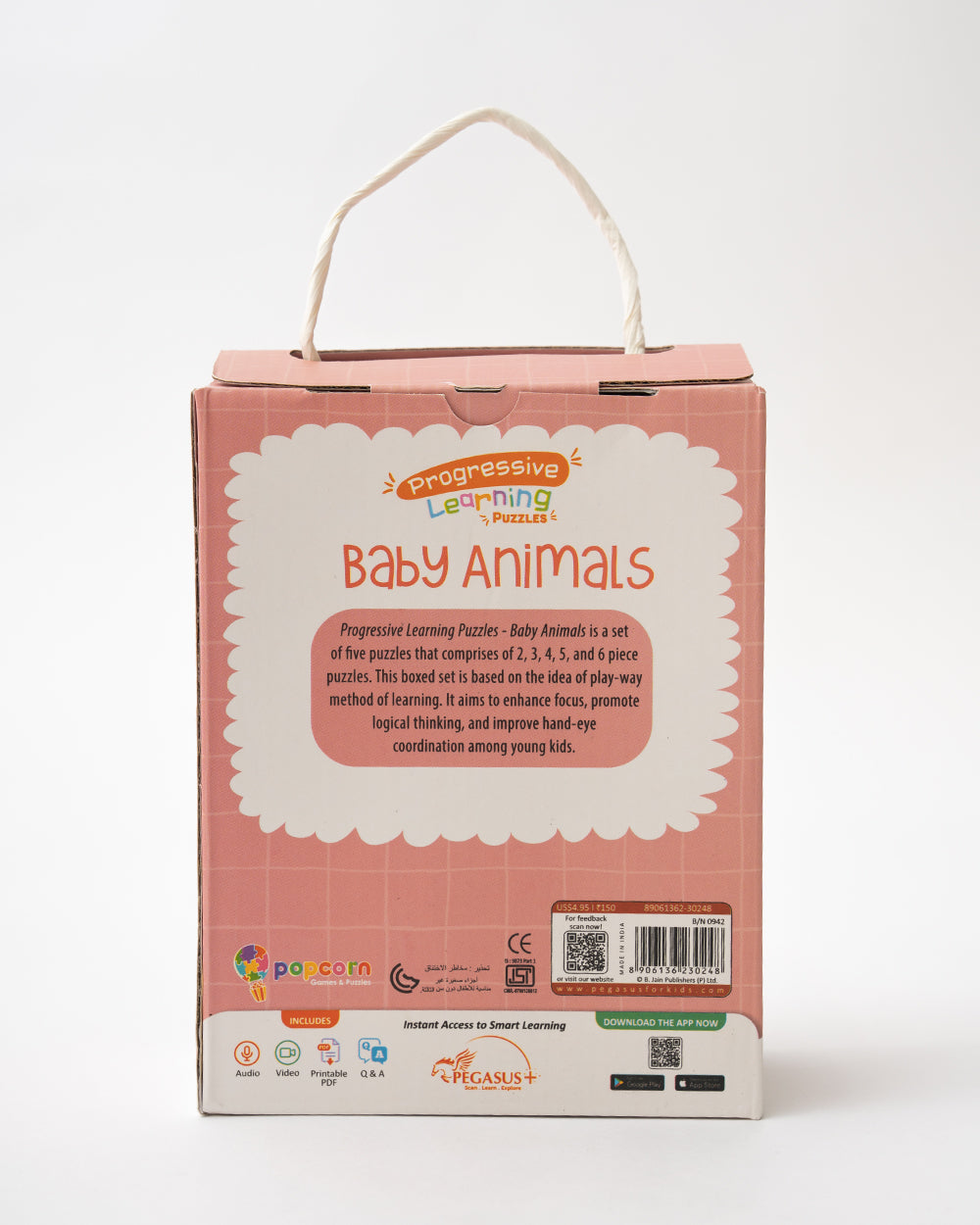 Introduce your little one to the adorable world of baby animals with the Progressive Learning – Baby Animals puzzle set. Specially designed for toddlers aged 2 and up, this set contains 5 progressive puzzles, each made of 4 sturdy, easy-to-handle pieces. The gradual increase in difficulty helps children build confidence while enhancing early cognitive and motor skills.