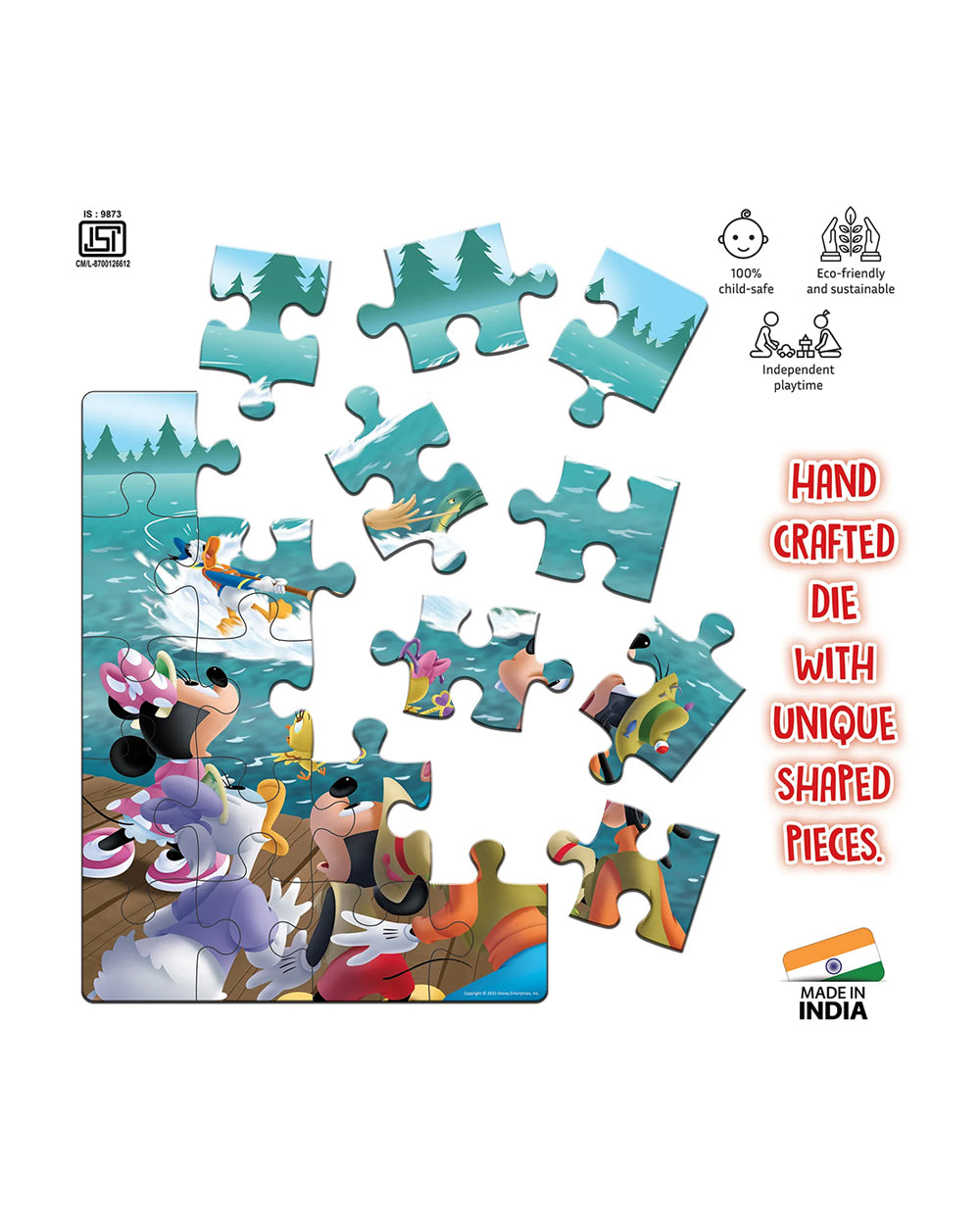 The Mickey & Friends Book & 20-Piece Puzzles set is a magical combination of storytelling and play designed to bring Disney's beloved characters to life for toddlers and preschoolers. This set is designed to support early childhood development through interactive reading and hands-on puzzle play, enhancing cognitive and motor skills while fostering a love for books.