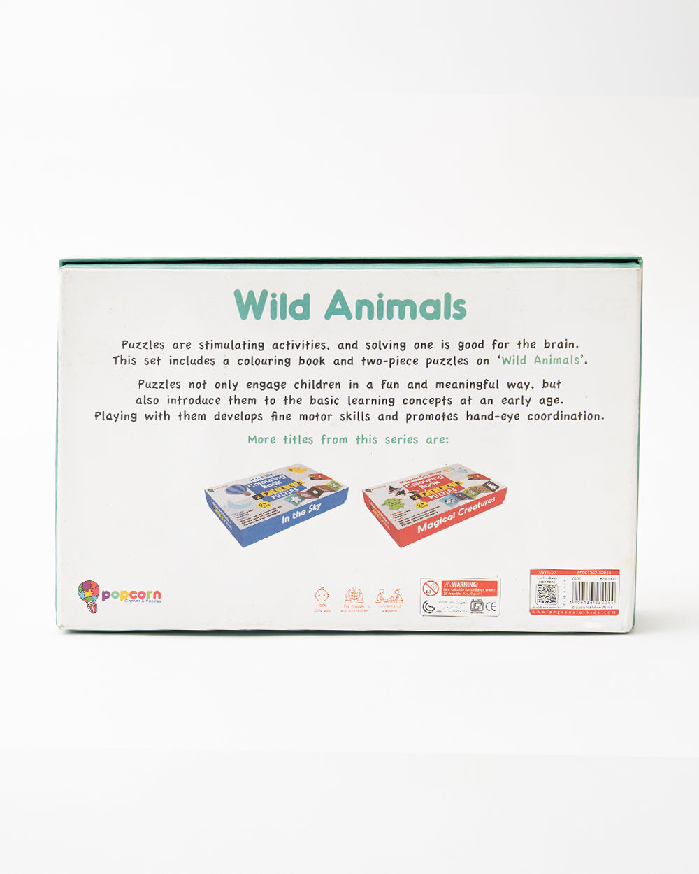 Popcorn Wild Animals Learning Kit-Includes Coloring Book & 2 Piece Puzzle-Learning & Educational Toys-36M+