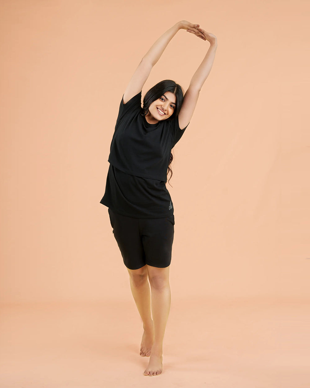 Putchi Black Maternity Nursing T-shirt-Solid Color-Cotton-Half Sleeves-Bump Friendly