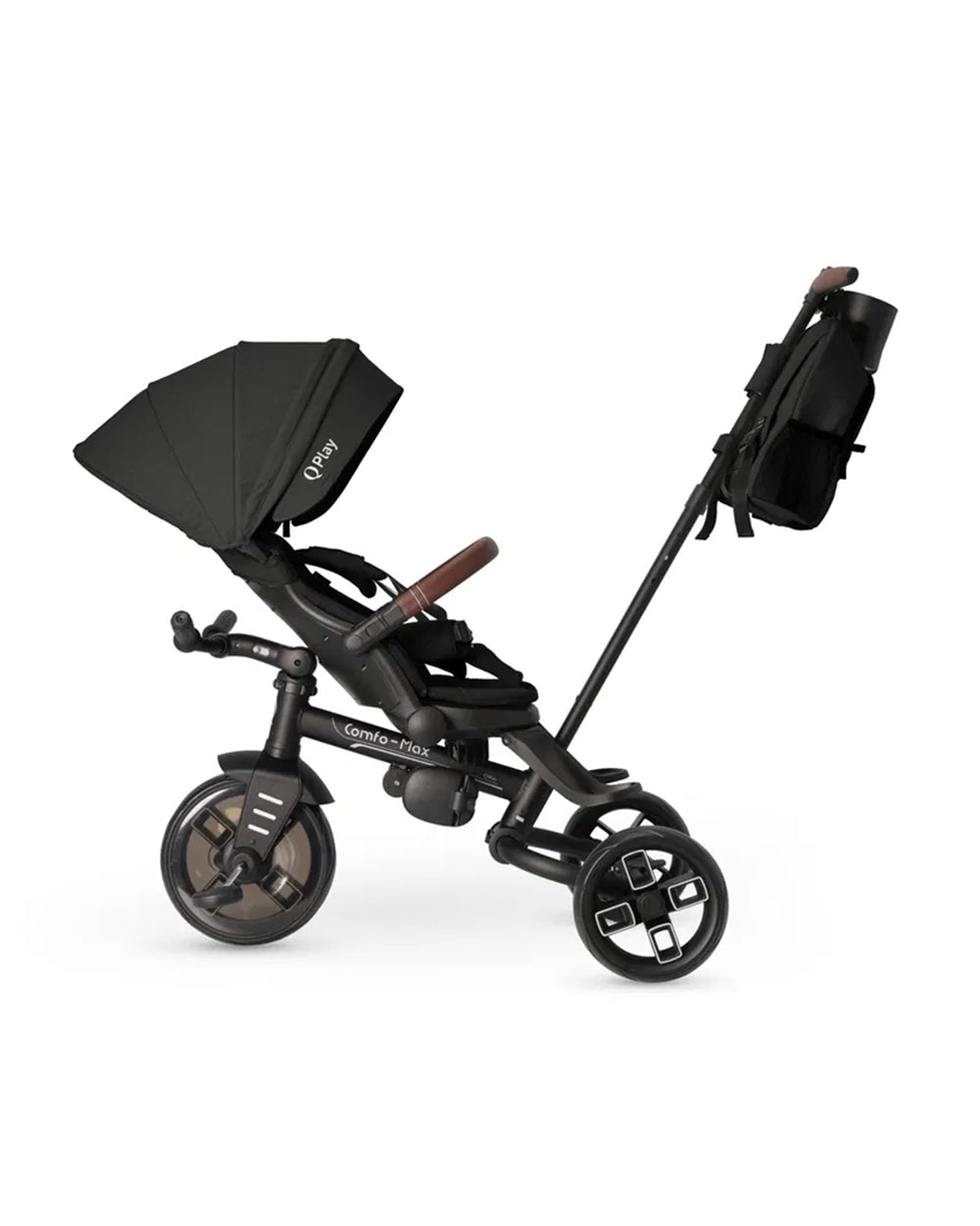 Qplay Comfo Max 7-in-1 Trike-Height Adjustable Parent Handle Bar-360 Degrees Rotating Seat-Adjustable Backrest-Foldable Frame-With Detachable Backpack-For 10M to 6Y (Upto 25 Kg)-Black
