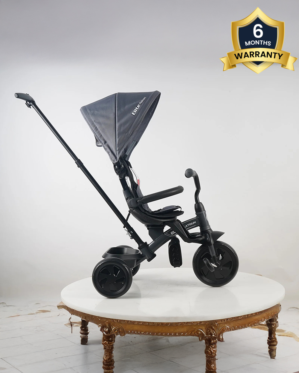 The Qplay Elite Platinum 6in1 Trike is a smart and economical solution that evolves with your child. Designed for functionality and comfort, it includes a rotating seat, dual footrests, and a quick-release pushbar with cup holder—ideal for growing toddlers and active families.
