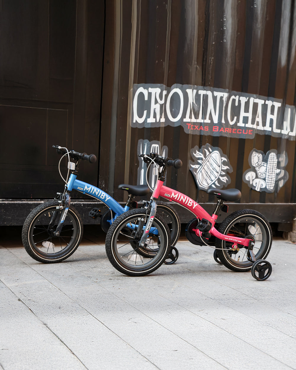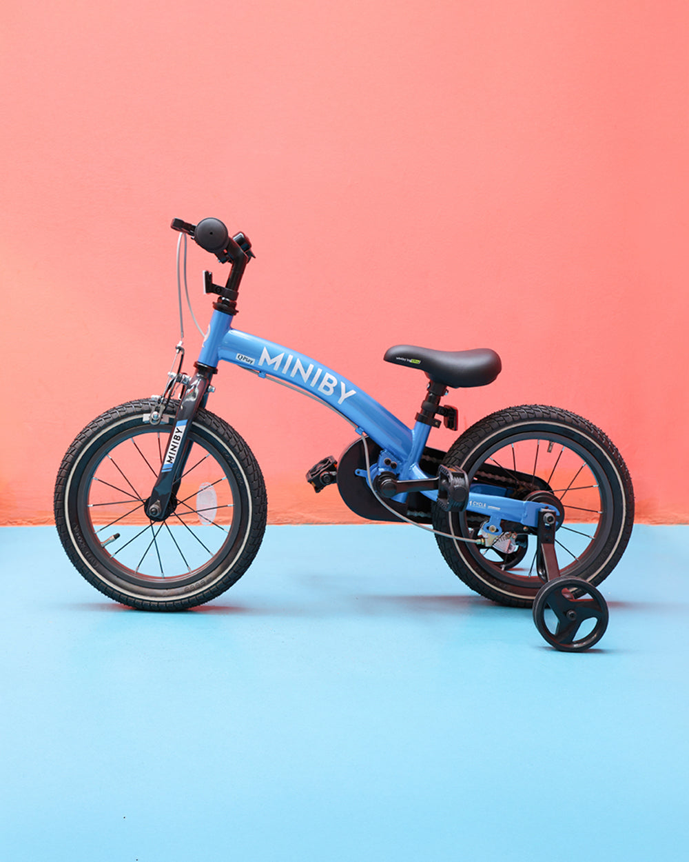 The Qplay 14-inch Miniby is a versatile and intelligently designed 3-in-1 bike that evolves with your child. It can be used as a balance bike to develop coordination, a bike with training wheels for stability, and a traditional pedal bike once they are ready. Its durable steel frame and thoughtful design make it the perfect companion for a child's early cycling journey.