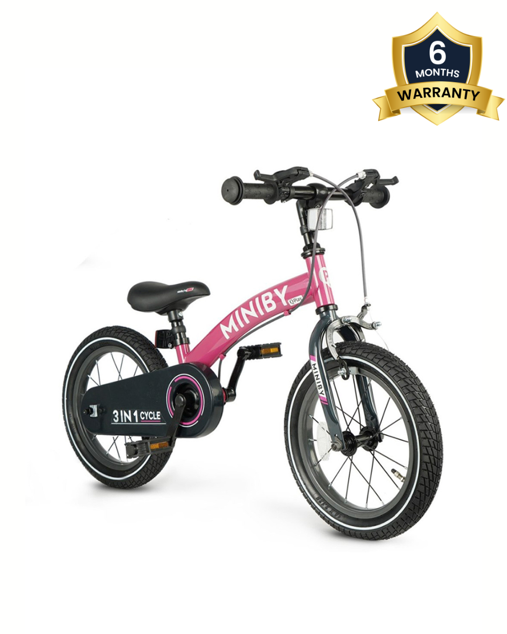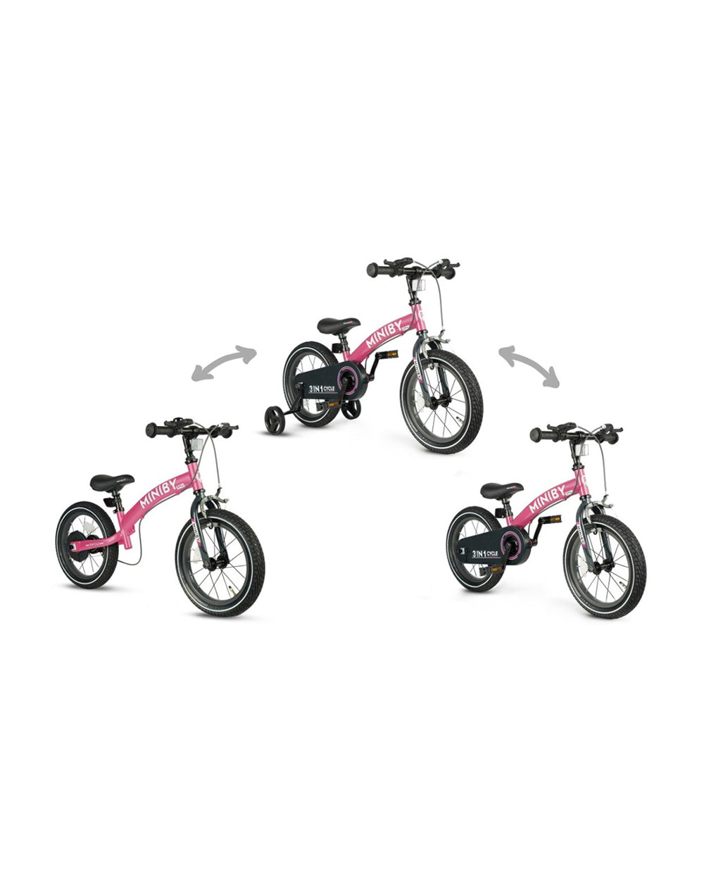 Qplay Miniby 3 in 1 Bike (14 Inch)-Balance Bike, Bicycle with Training Wheel Mode & Bicycle Mode-Adjustable Handlebar & Seat Height-Steering Limiter For Additional Safety-For 2.5 to 8Y-Pink