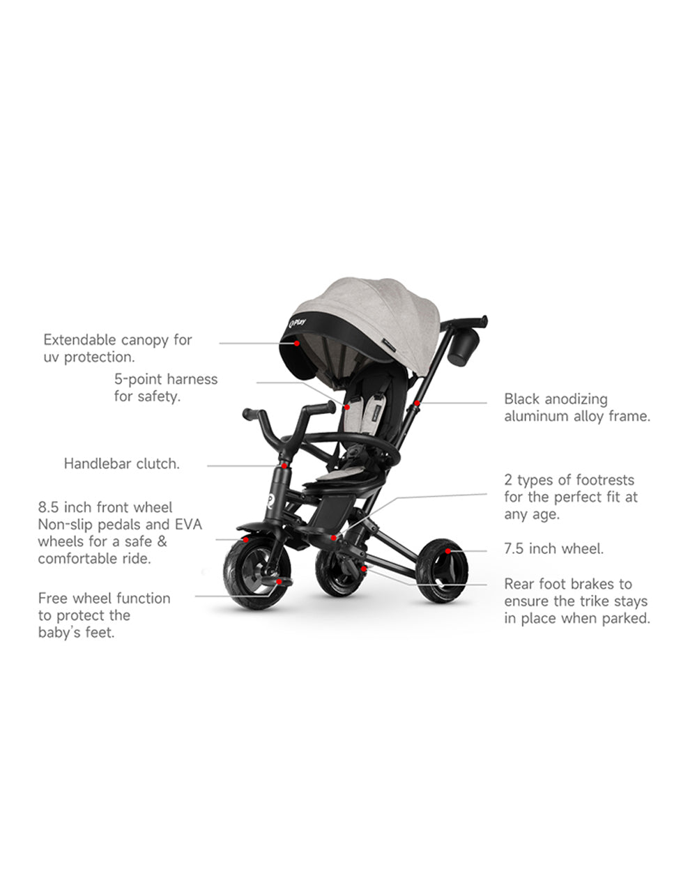 • 5-in-1 Functionality: Adapts to your child's needs as they grow, transitioning from a parent-facing mode to a self-riding tricycle.
