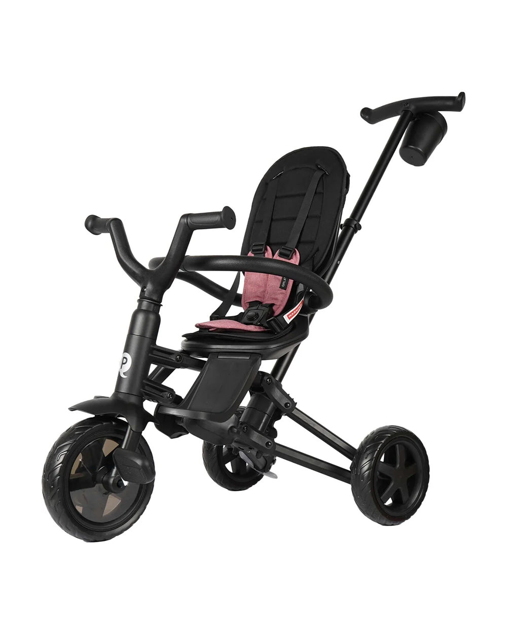 The Qplay Nova Niello is a luxury, upgraded foldable tricycle with a new style and an aluminum alloy frame. Its super-compact design makes it easy to transport and store, while the 360-degree rotating seat allows for interactive, face-to-face rides or a forward-facing view. It is designed to adapt to your child's needs through its 5-in-1 functionality.