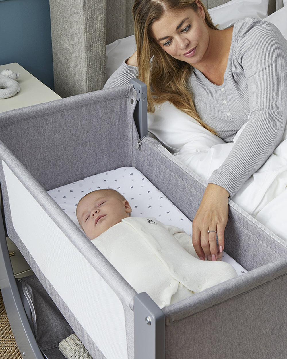 • Whisper‑Quiet Drop‑Down Side: Access your baby easily without disturbing their sleep.