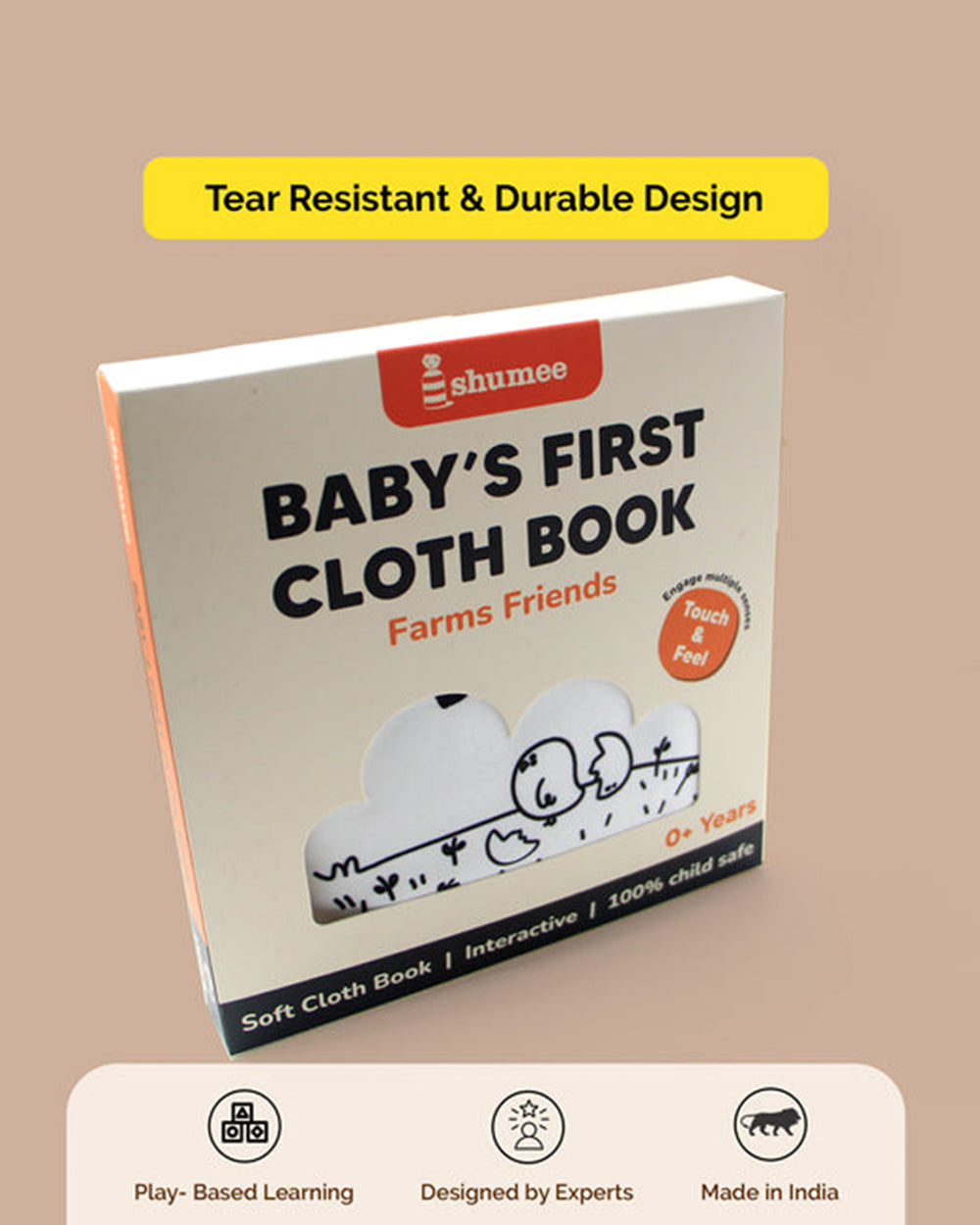 Introduce your baby to the joy of learning through play with the Baby's First Book – a soft sensory cloth book specially designed for newborns and infants aged 0+ years. This 8-page interactive cloth book features high-contrast visuals, engaging textures, crinkle sounds, and a removable baby-safe mirror. Crafted from soft, non-toxic, and washable materials, this book fosters multi-sensory development, fine motor skills, and early communication. Ideal for tummy-time, bedtime bonding, or independent play, it’s a perfect first book and an ideal gift for baby showers and new parents.