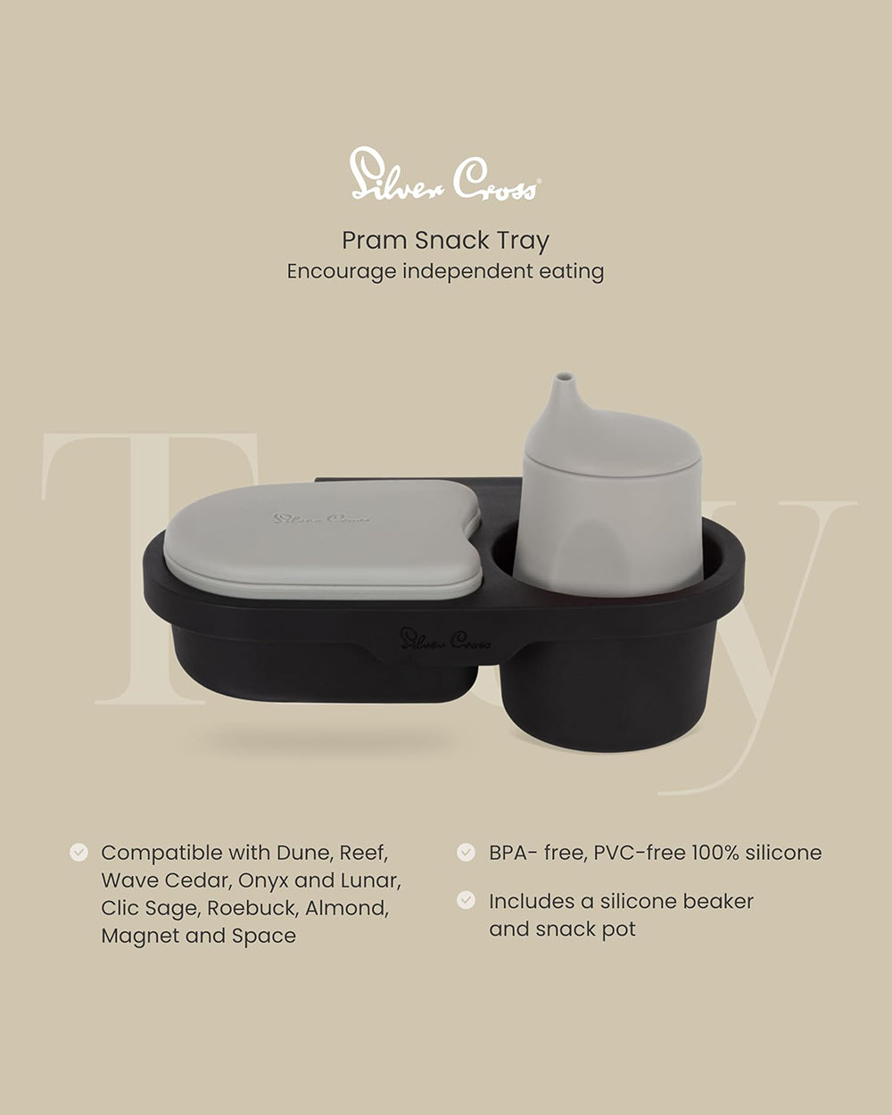 The Silver Cross Clic 2 Stroller Combo is a complete travel-ready solution designed for busy, modern families. This combo includes the lightweight and compact Clic 2 stroller that folds down with just one click, making it perfect for everyday use, travel, and storage. For added convenience, the included snack tray features a non-toxic silicone beaker and snack pot that securely attach to the bumper bar, allowing little ones to snack independently while minimizing mess. To protect your stroller on the go, the water-resistant travel bag with an adjustable strap and reinforced PVC base keeps it safe from dirt, scratches, and moisture. Together, these three essentials offer unmatched ease, comfort, and functionality for life on the move.