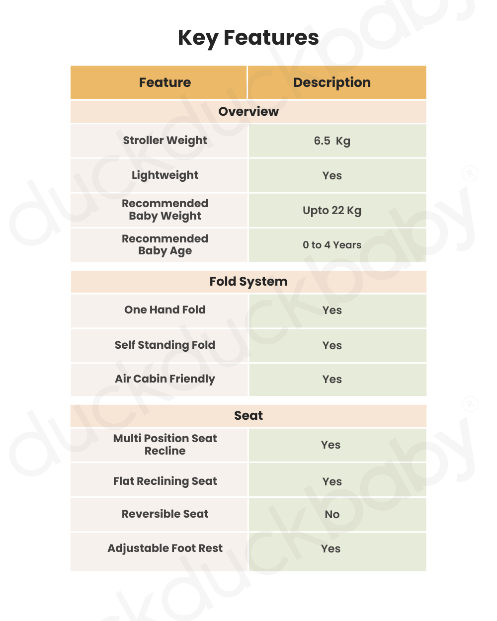 • Super Lightweight: Weighing only 6.5kg, this stroller is a breeze to maneuver and carry.