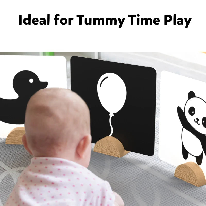• Versatile Engagement: Included wooden stands allow you to display the cards anywhere, anytime - feeding table, tummy time, or nap time.