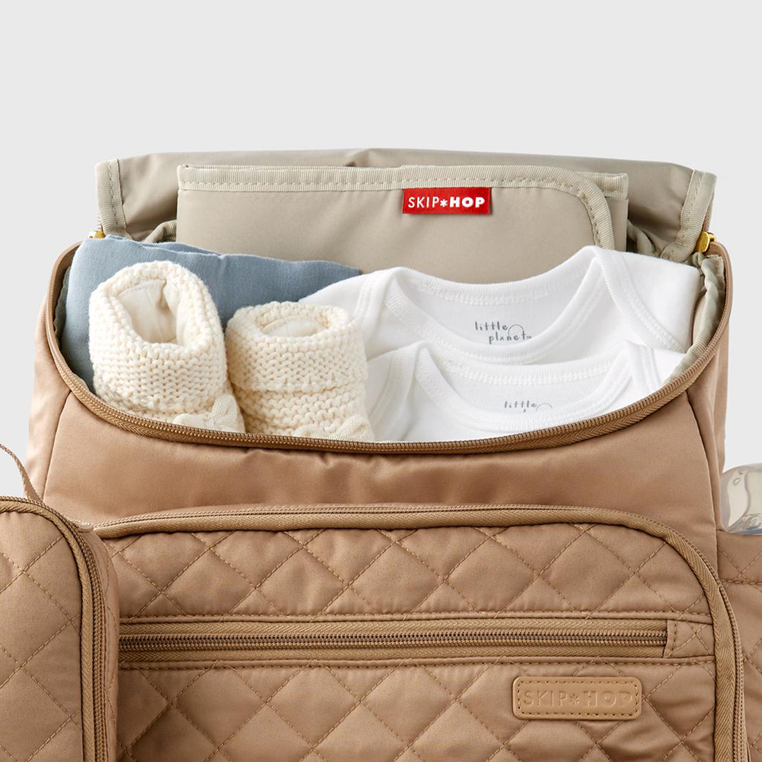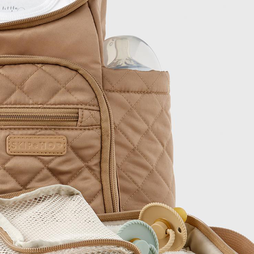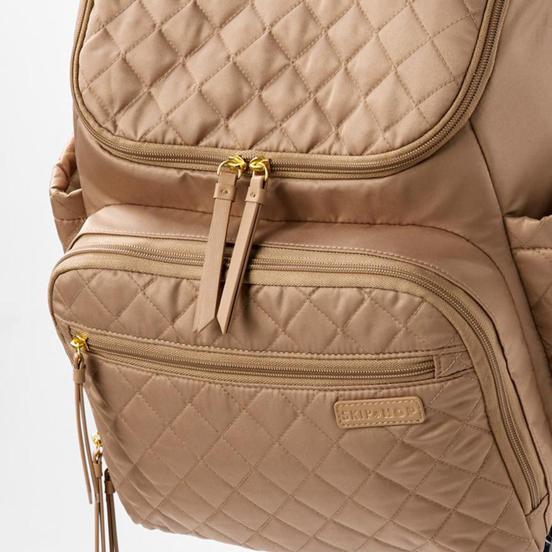 Skip Hop Forma Diaper Bag-Backpack-With Changing Pad-Extra Wide Opening & Lightweight Quilted Design-Camel