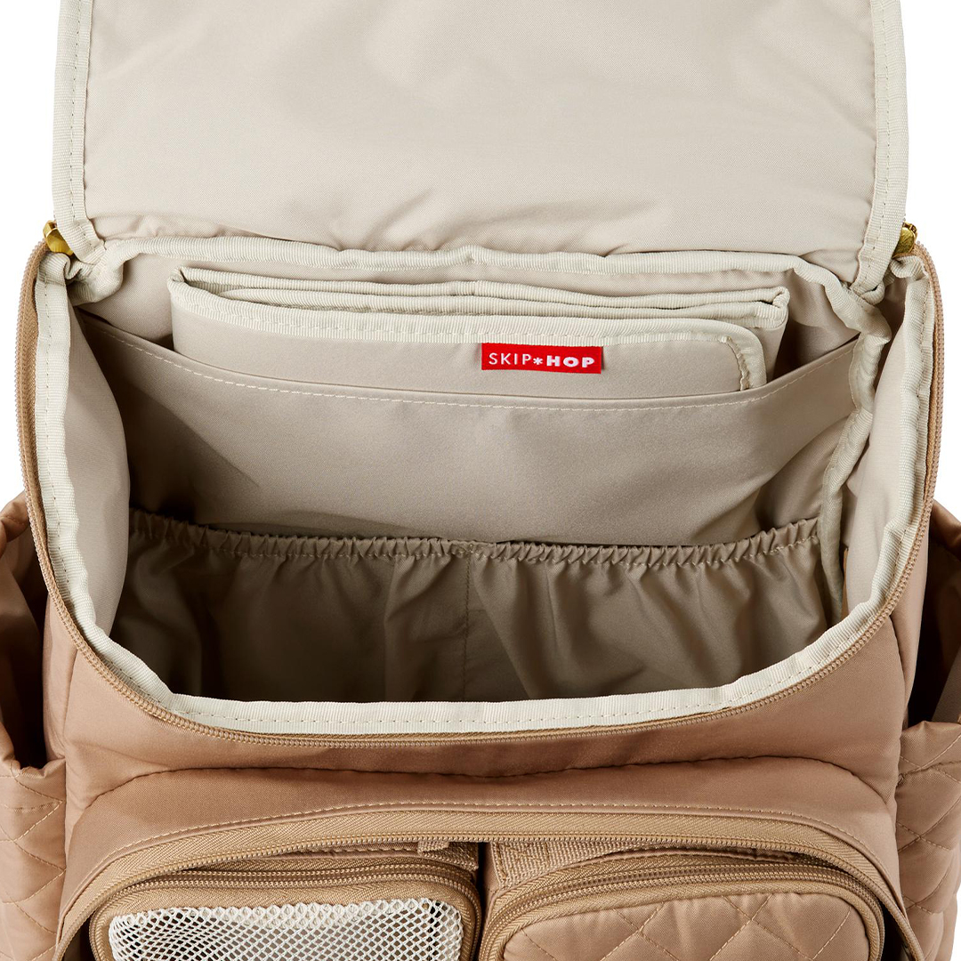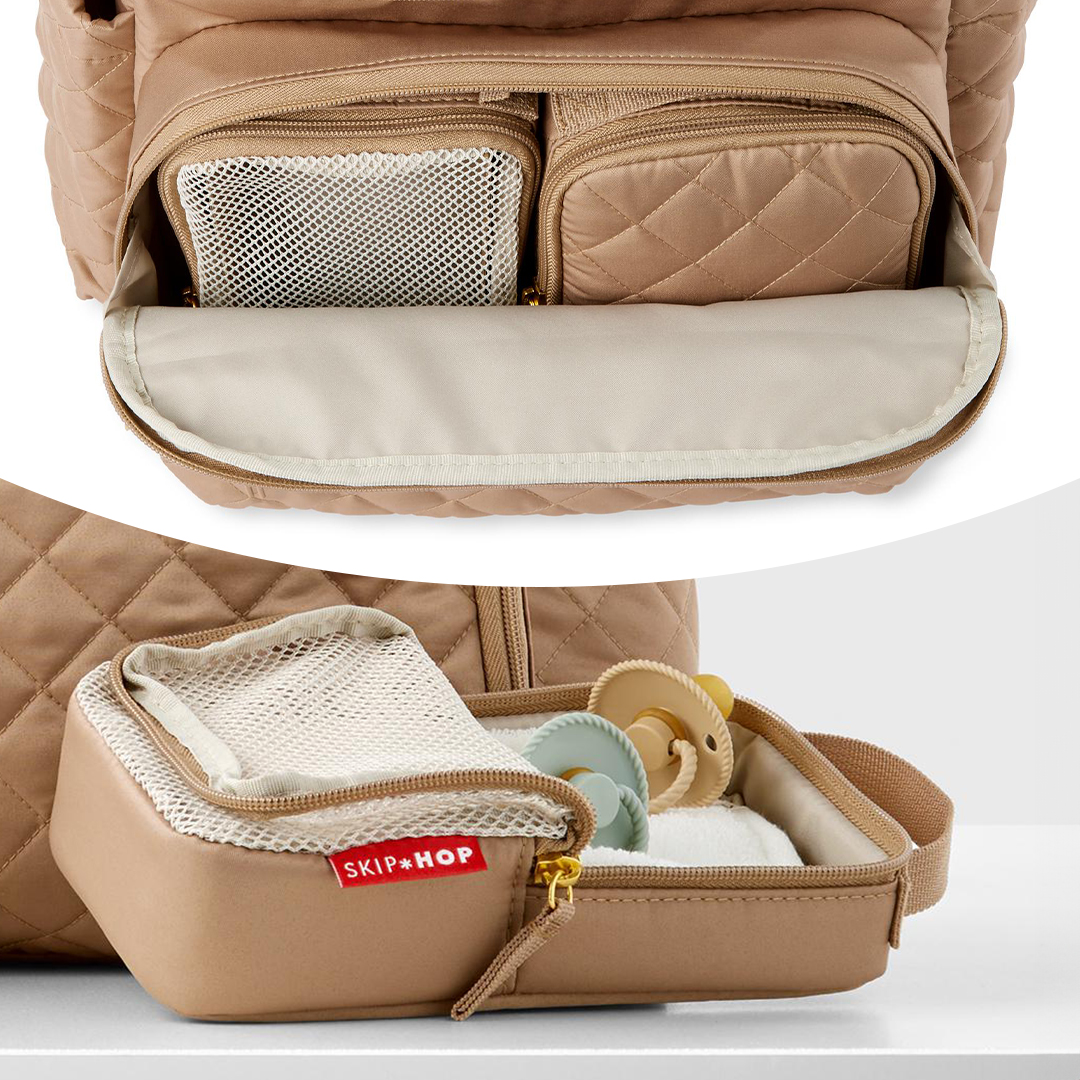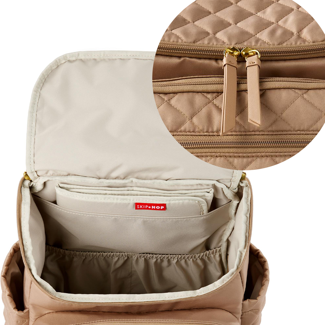 Skip Hop Forma Diaper Bag-Backpack-With Changing Pad-Extra Wide Opening & Lightweight Quilted Design-Camel