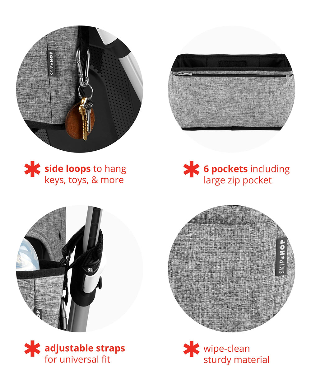 Skip Hop Grab & Go Ultra Stroller Organizer-With Adjustable Straps & Insulated Bottle Pockets-Grey