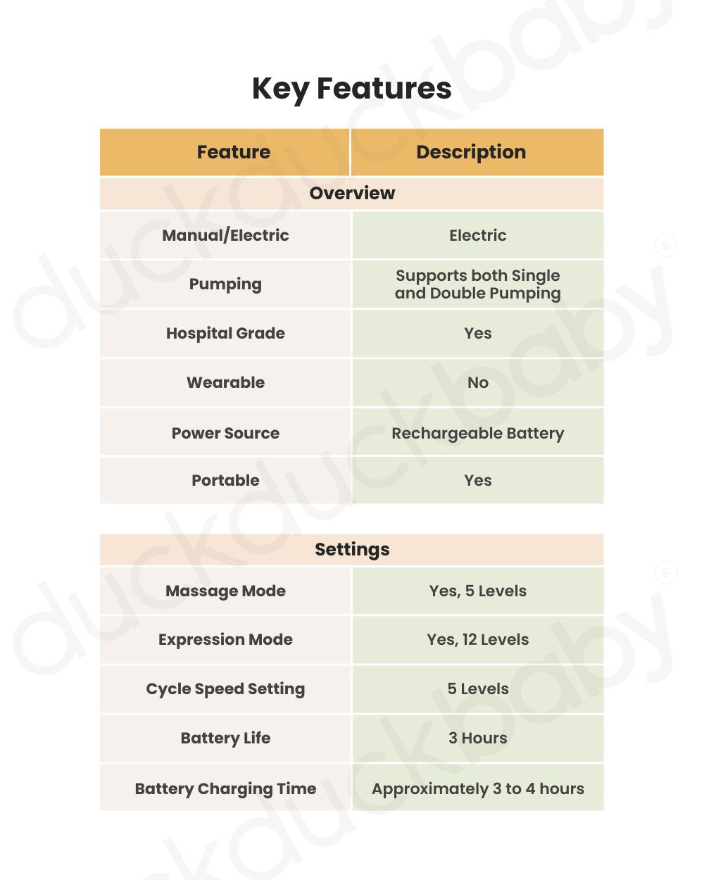 • Auto-Timer with Display: Offers visibility and precision during each pumping session.