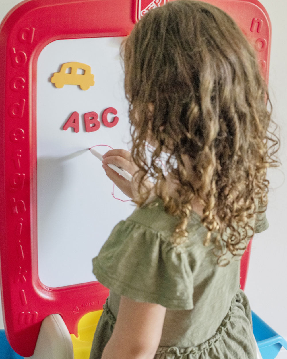 Step2 All Around Easel Board-Art & Craft Kit-Double‑Sided Easel Includes 94‑Piece Foam Magnet Kit-36M+