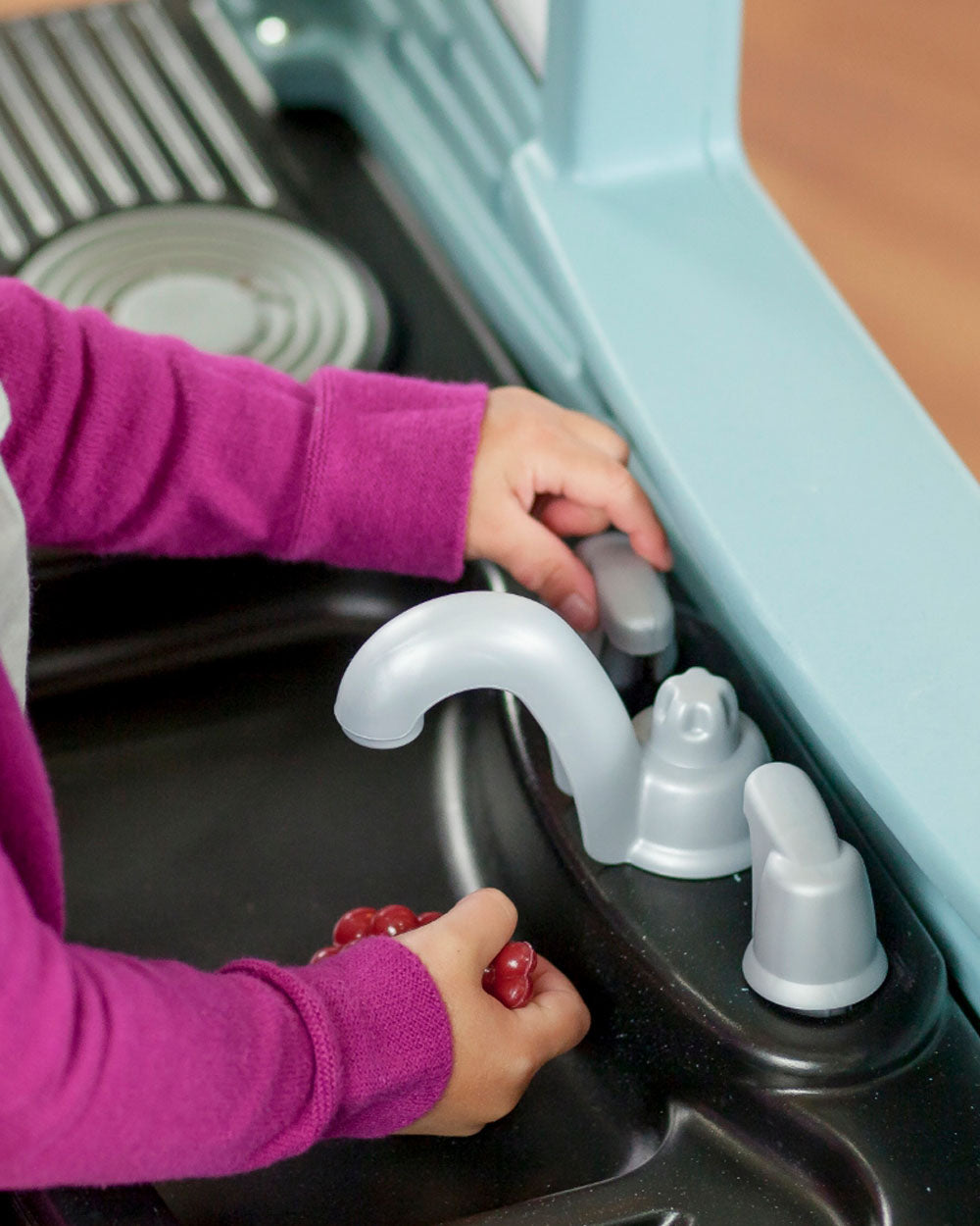 • Interactive Cooking Play: Features clicking knobs and a glowing burner with sound effects for immersive roleplay.