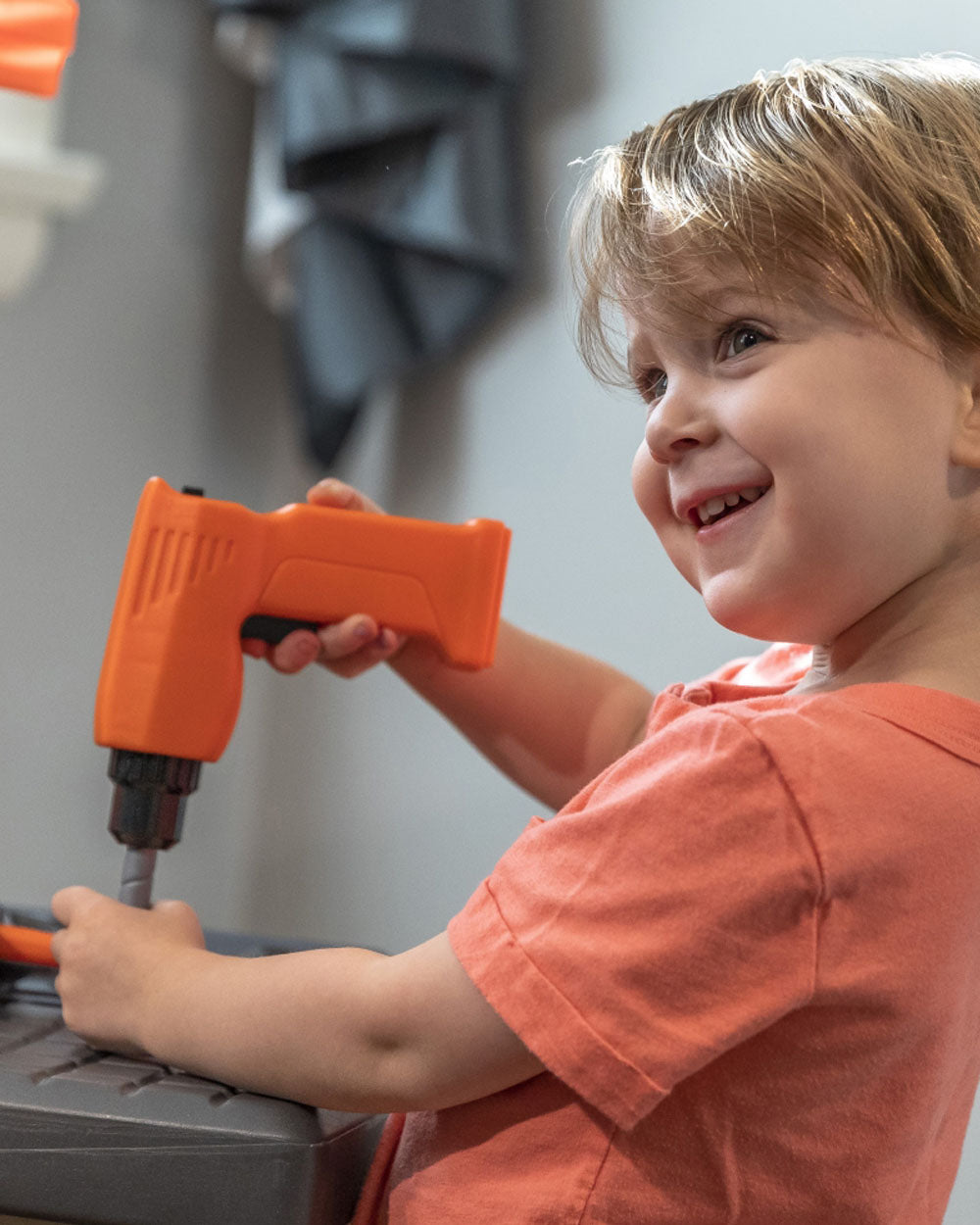 • Realistic Power Tools: Includes a working play drill, saw, and hammer to bring pretend play to life.