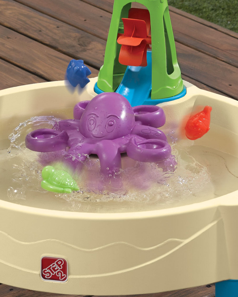 • Spinning Octopus Feature: Rotate the octopus topper to stir up whirlpools and currents in the basin.