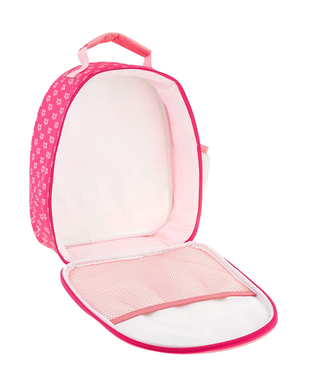 • The All Over Print Lunchbox features a spacious insulated interior compartment, an outside storage pocket– perfect for mealtime accessories like utensils and napkins, an interior elastic and mesh pocket, and an exterior mesh water bottle holder.