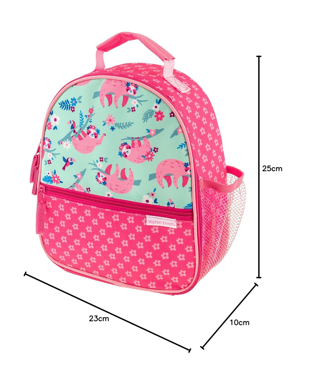 Stephen Joseph All Over Print Lunch Box-Sloth-Side Mesh Pockets-Insulated Compartments-For Toddlers