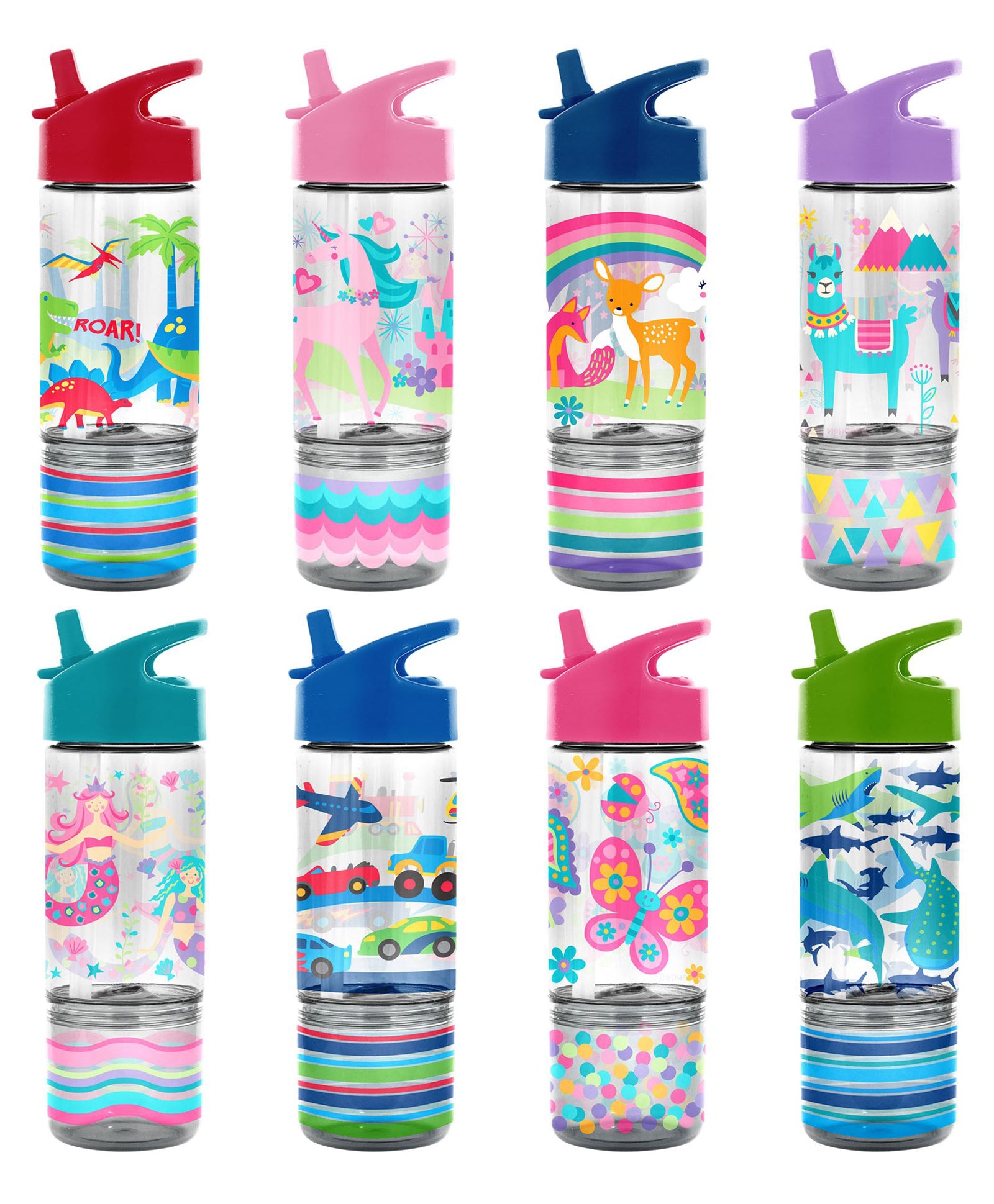 Never go hungry on adventure time again. Let the little ones take a drink and snack with them whenever they are on the move. This perfect sized drink bottle with flip top has a detachable snack cup attached to its bottom. Made for little hands and little hearts, this bottle and snack container fit into any bag, stroller or backpack. A generous opening provides easy access to the snacks stored inside and the lid stays attached so it won't roll into the sandbox or disappear.