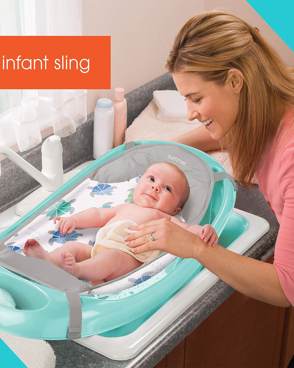 • Grows With Baby: Our bath tub for baby features an infant sling that cradles newborns throughout the bath. As the baby grows, make him bathe with a comfortable recline without sliding.