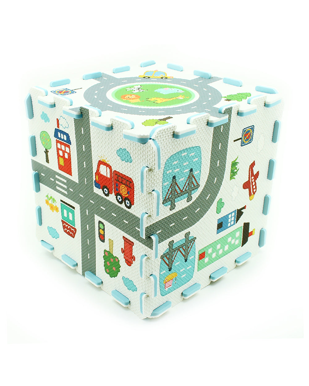 Sunta Road Track Puzzle Playmat-8 EVA Foam Tiles with Interlocking Road Print-10M+