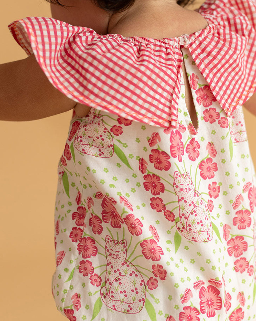 The Almirah White & Pink Romper-Cat-Cotton-For Infants
