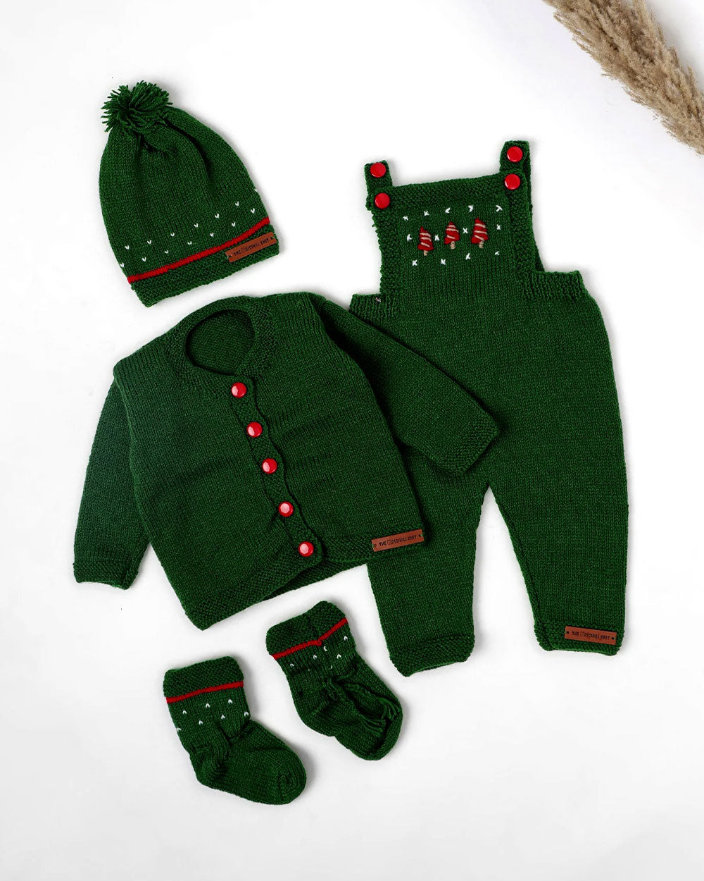 The Original Knit Bottle Green Dungaree Set-Elf Cuddle-Acrylic-For Infants