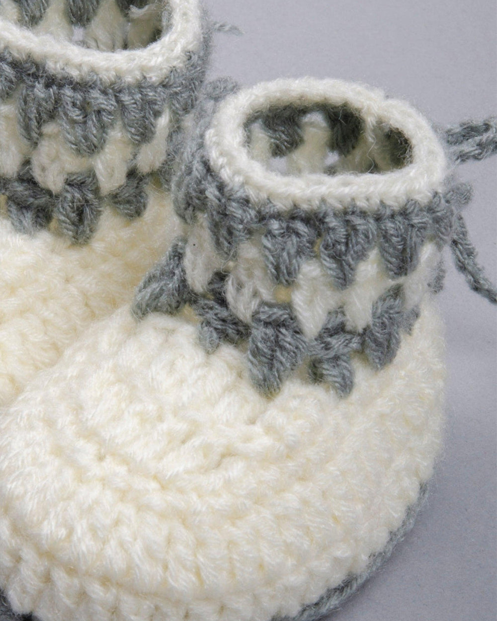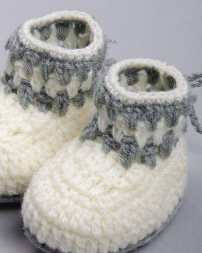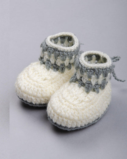 The Original Knit Off White & Grey Winter Wear Booties-Embroidered-Yarn-For Infants