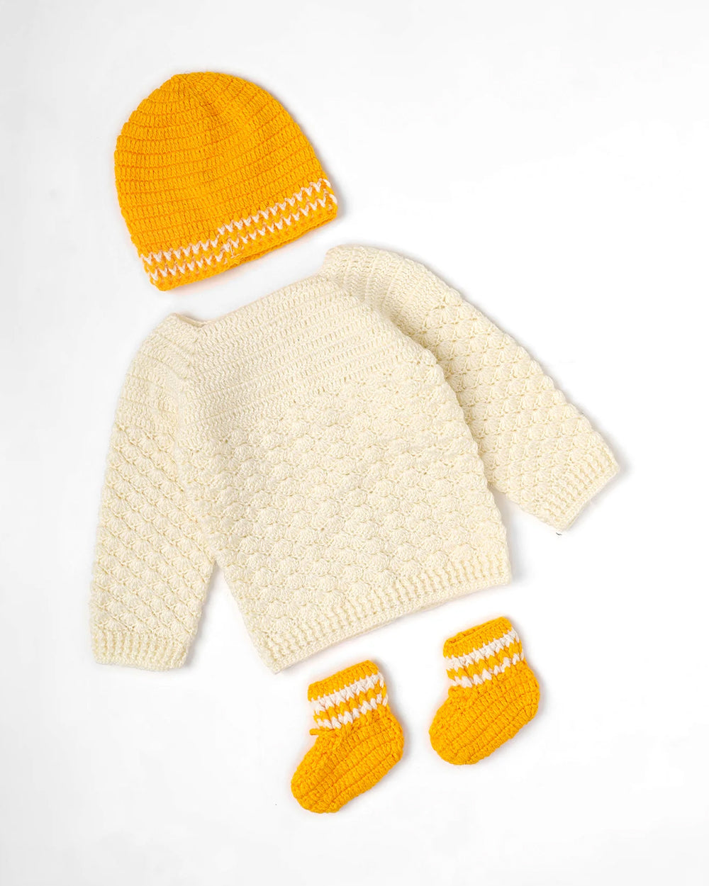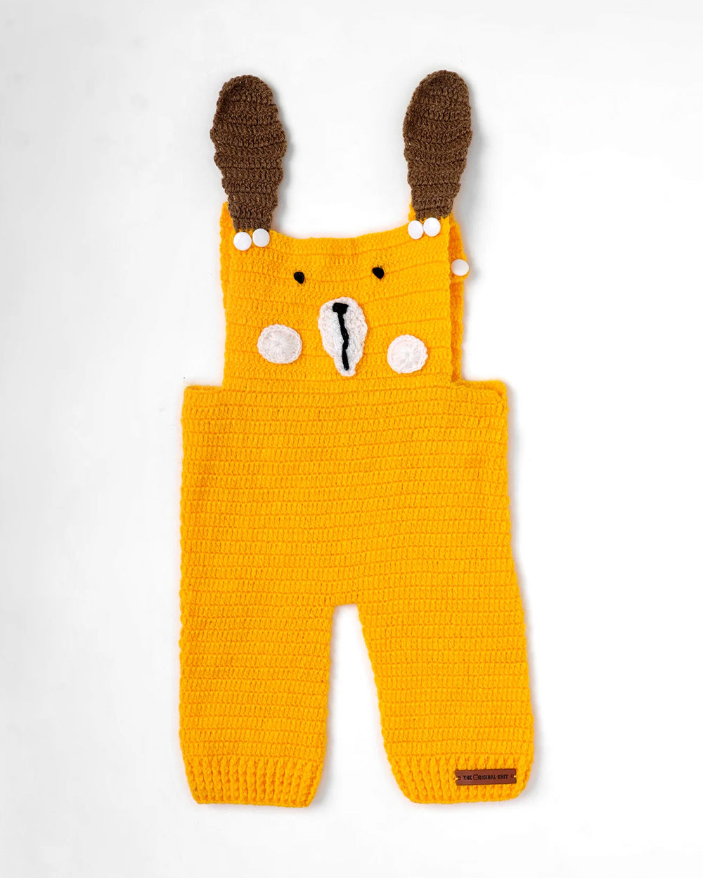 The Original Knit Off White & Yellow Winter Wear Dungaree Set-Crochet-Acrylic-For Infants