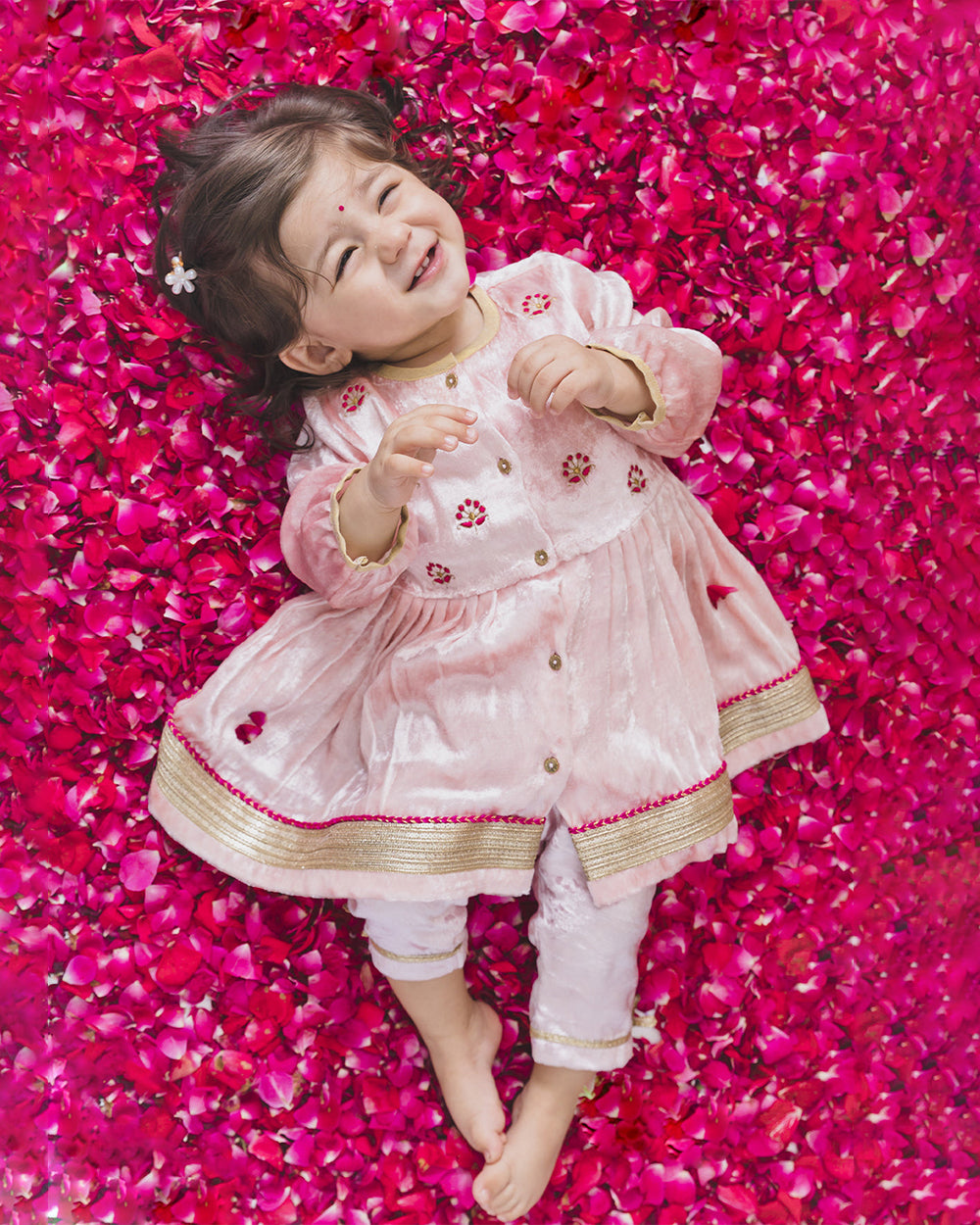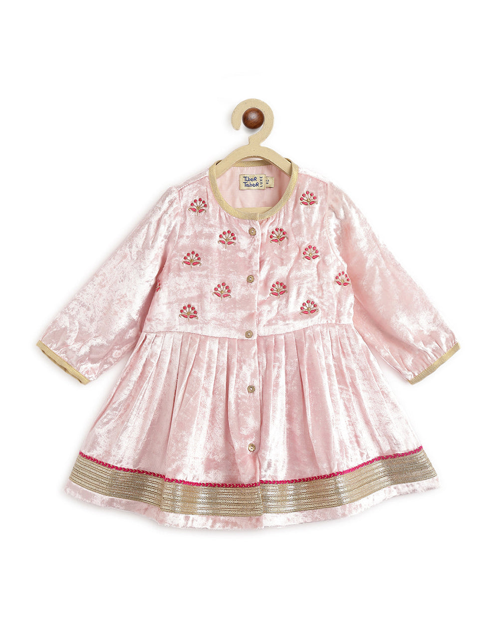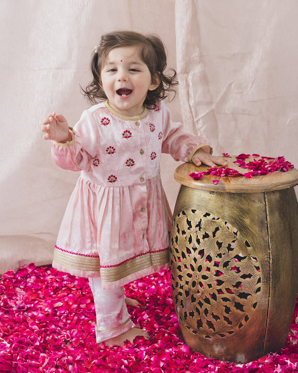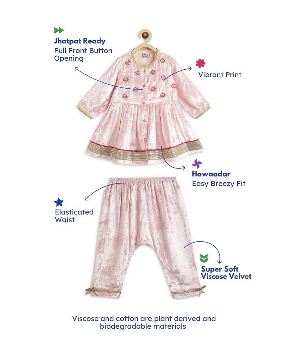 Tiber Taber Peach Angrakha Set-Royal Rose-Velvet-For Infants