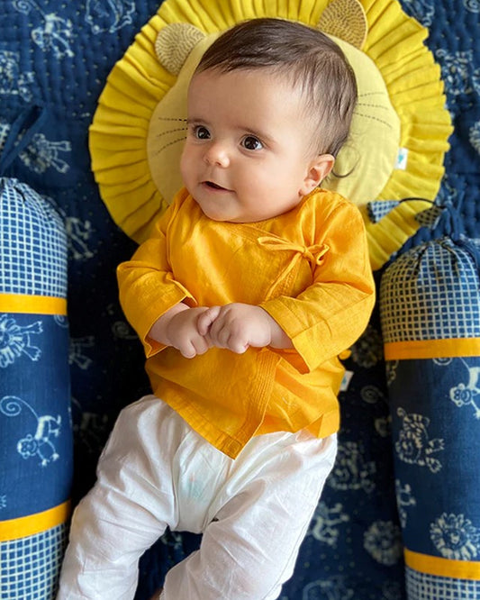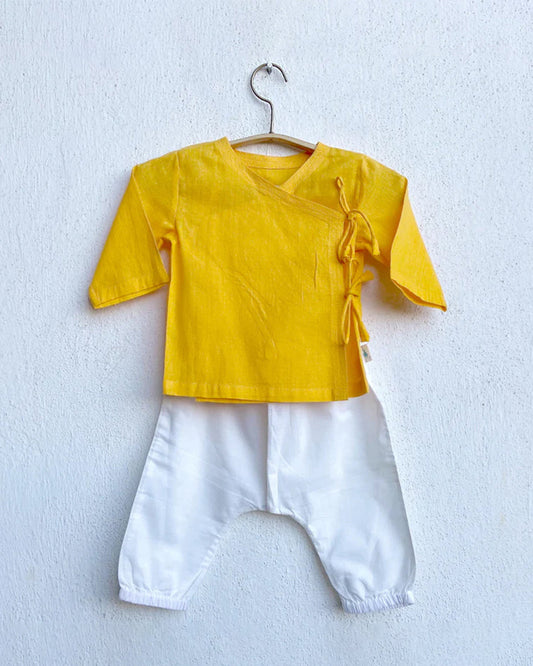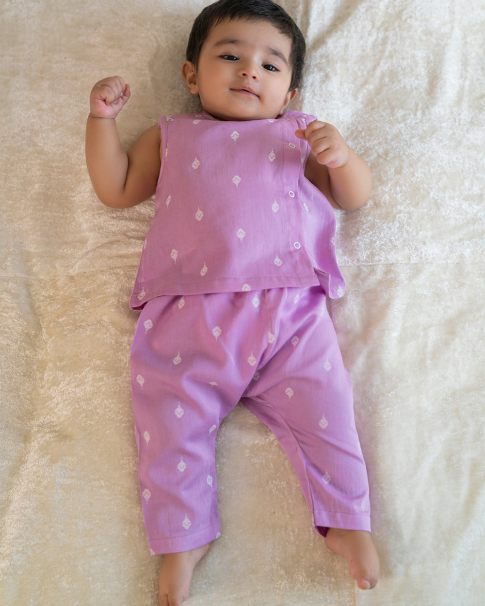 Tiber Taber Purple Jhabla and Pajama Set-White Printed-Cotton-For Infants