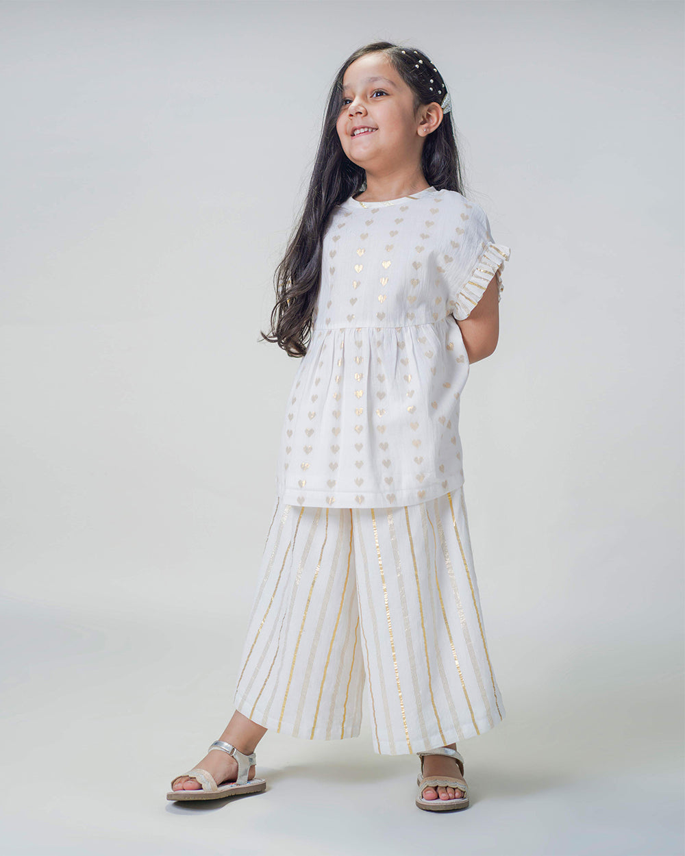 Tiber Taber White Top and Culottes Set Golden Hearts-Cotton-For Infants