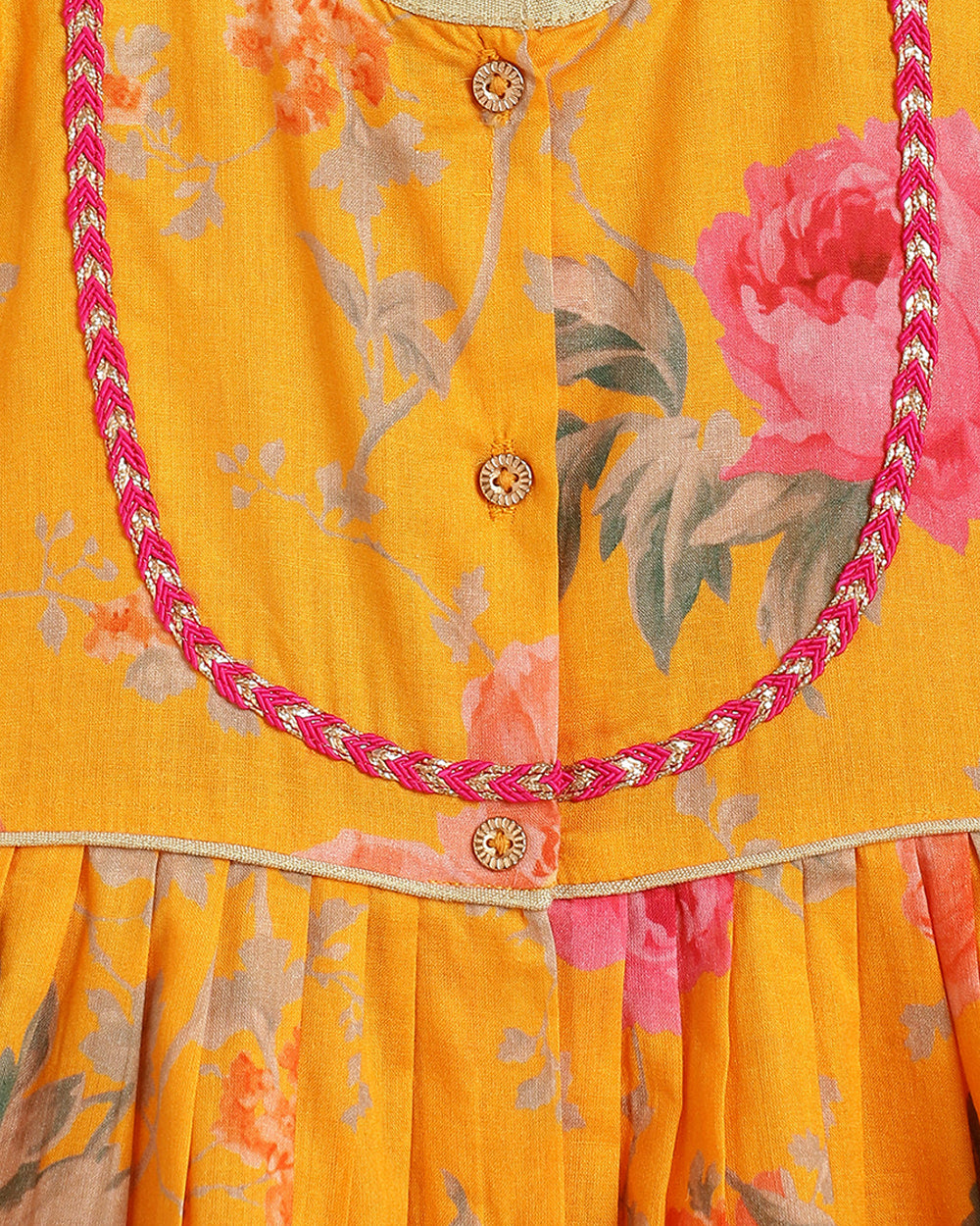 Tiber Taber Yellow Angrakha Set-Garden Bloom-Cotton-For Infants