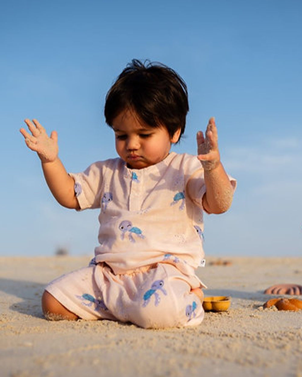 Tickle Tickle Peach T-shirt & Shorts-Toby Turtle-GOTS Certified Organic Cotton-For Infants