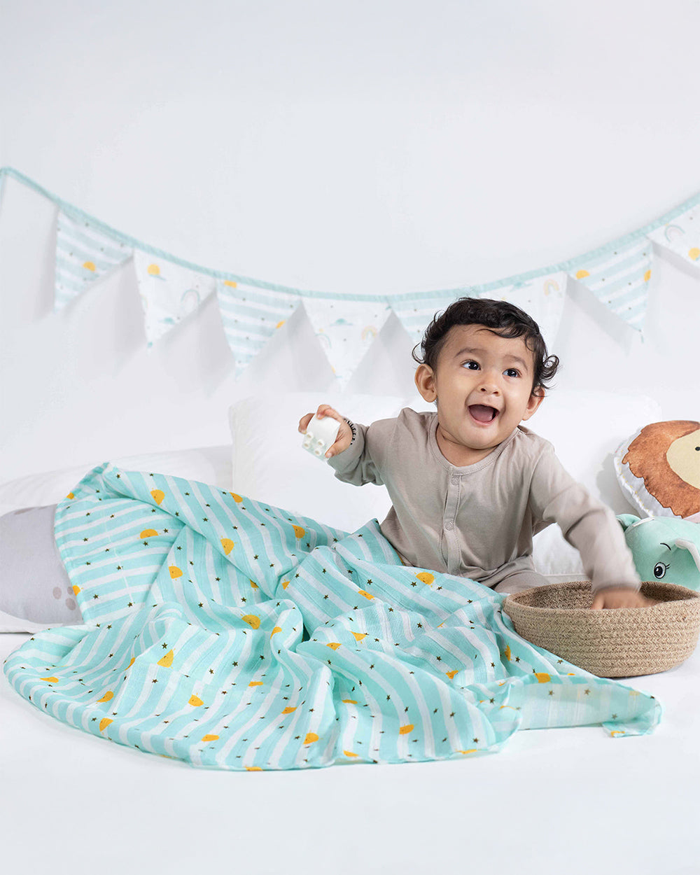 • Can be used in a number of ways: light blanket, nursing cover, stroller cover or tummy time blanket!