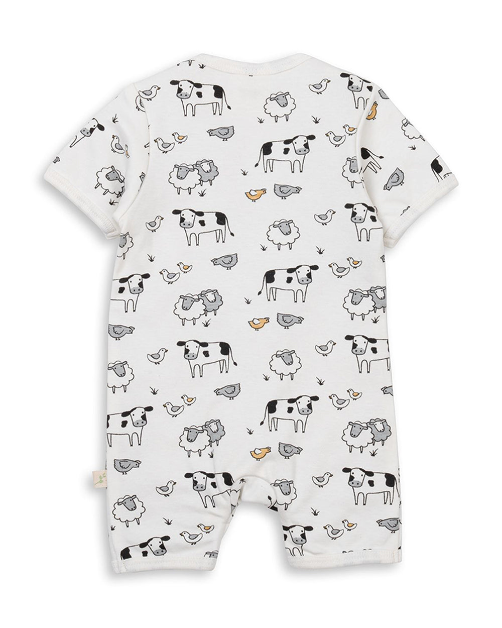 Tiny Twig White Half Romper-100% Organic Cotton-Farmyard Animals-For Infants