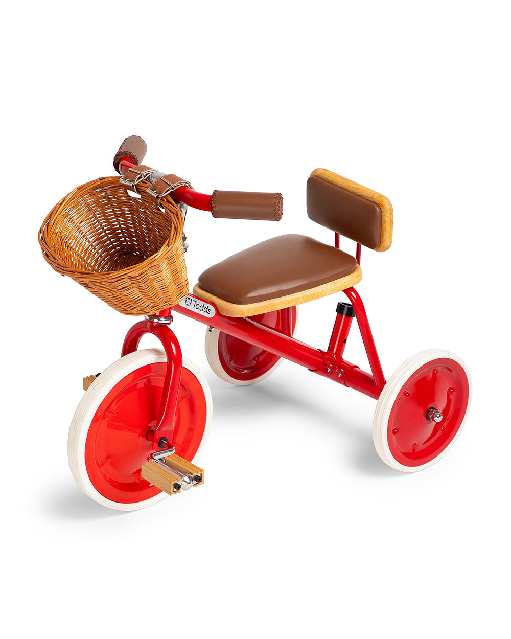 Todds Trike-ISO 8124 Certified-Detachable & Height Adjustable Parent Handlebar-With Birchwood Pedals & Vegan Leather Padded Seat-For 18M+-Racer Red