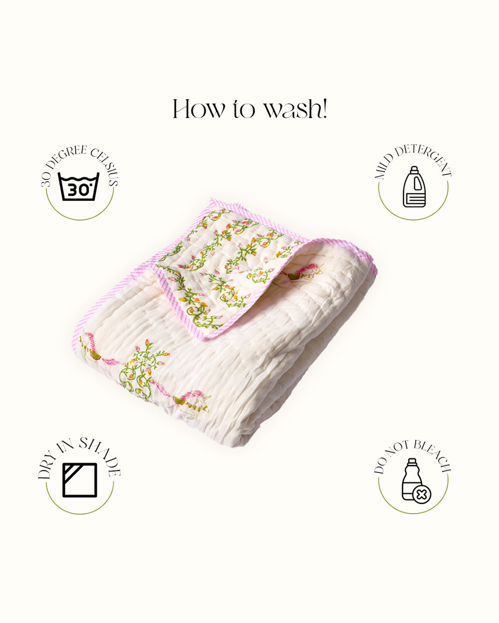 Torii Quilt for Baby-100% Cotton Muslin-Ultra Soft & Breathable-Cream-Unicorn Magic-0 to 24M