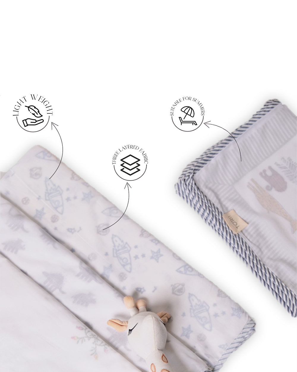 Torii Dohar for Baby-100% Cotton Muslin-Ultra Soft & Lightweight-Blanket-Light Blue-Rocket Star-0 to 24M