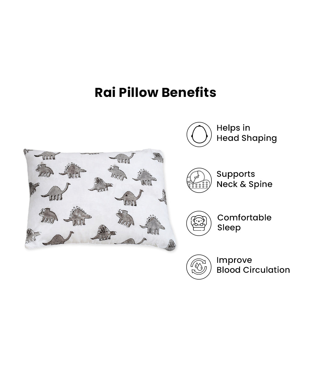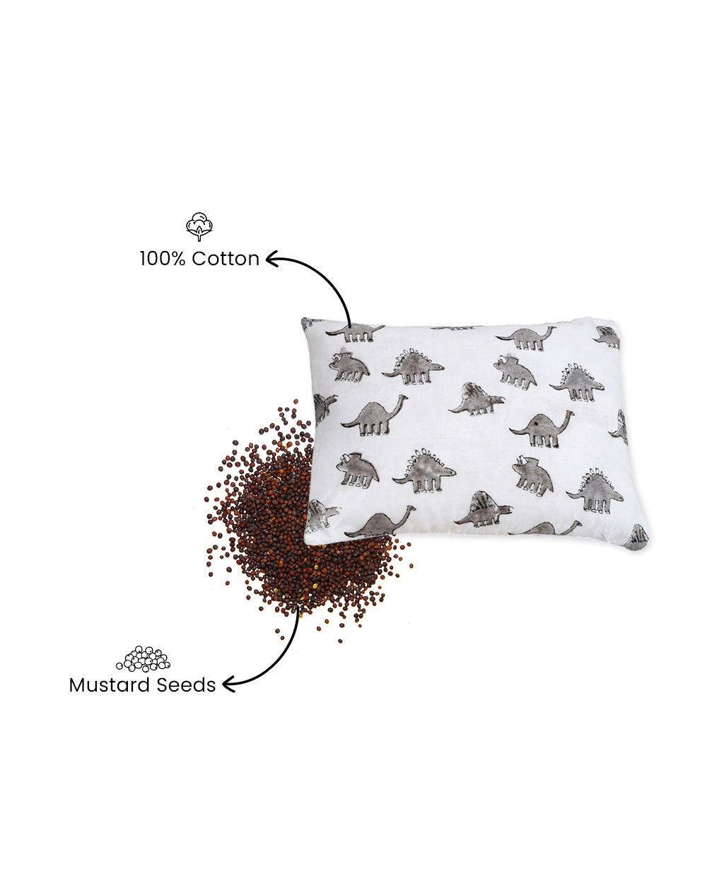 Torii Mustard Pillow-100% Cotton Muslin-Supports Head Shaping-White-Dino-0 to 12M